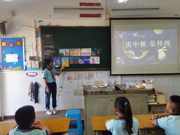 9月18日,為了讓學(xué)生更深入了解中秋節(jié)文化,少先隊(duì)大隊(duì)輔導(dǎo)員朱文娟老師在國(guó)旗下深情地講述關(guān)于中秋節(jié)的來(lái)歷,與學(xué)生們一起吟詠文人墨客的經(jīng)典詩(shī)文,呼吁大家繼承祖國(guó)優(yōu)秀傳統(tǒng)文化和傳統(tǒng)節(jié)日,增強(qiáng)民族文化自信心。班會(huì)課上,班主任有條不紊地開(kāi)展活動(dòng)。如一、二年級(jí)的小朋友,在爸爸媽媽的幫助下帶上月餅、水果等美食,與同學(xué)們開(kāi)展中秋傳統(tǒng)美食交流會(huì)。三、四年級(jí)開(kāi)展一次中秋創(chuàng)意燈籠展示會(huì)。會(huì)上,學(xué)生提著親手制作的燈籠得意地分享他們的制作樂(lè)趣。