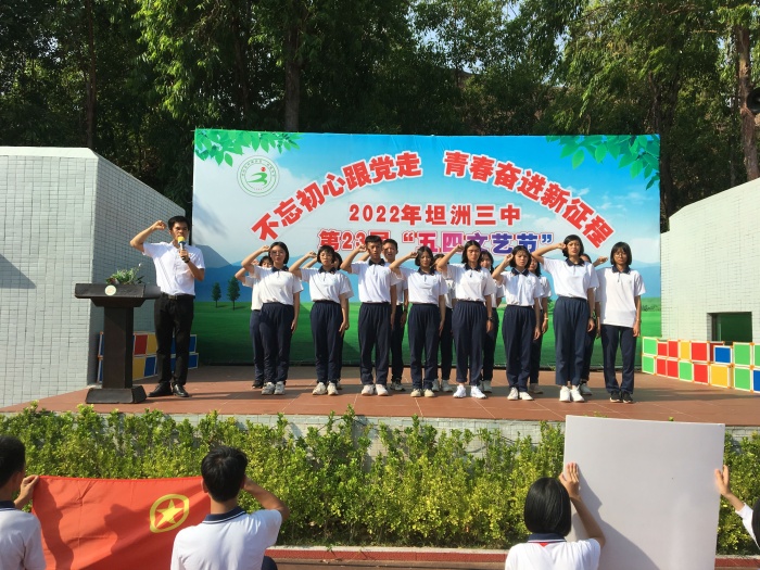 四月的三中校園繁花似錦,郁郁蔥蔥,處處洋溢著青春的活力,在這個陽光燦爛,熱情似火的暮春季節(jié),為喜迎黨的二十大,熱烈慶祝中國共青團成立100周年,進(jìn)一步弘揚五四精神,引導(dǎo)廣大青年堅定不移感黨恩、聽黨話、跟黨走,4月29日下午,坦洲鎮(zhèn)第三初級中學(xué)迎來了以 “不忘初心跟黨走,青春奮進(jìn)新征程”為主題的五四文藝匯演暨入團儀式活動,全體師生參與了此次活動。