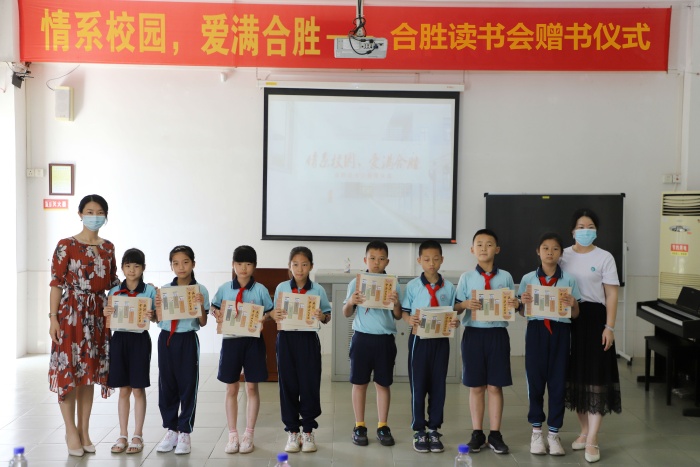 2022年4月27日,廣東合勝騰翼集團(tuán)有限公司(合勝集團(tuán))向坦洲鎮(zhèn)合勝小學(xué)捐贈了中英文繪本共350冊。合勝小學(xué)舉辦了以“情系校園,愛滿合勝”為主題的圖書捐贈儀式,表達(dá)對廣東合勝騰翼集團(tuán)有限公司的感謝之情。坦洲鎮(zhèn)合勝讀書會負(fù)責(zé)人邱傳如、坦洲鎮(zhèn)合勝百貨黨支部書記楊瑩瑩、坦洲鎮(zhèn)合勝小學(xué)副校長盧云、坦洲鎮(zhèn)合勝小學(xué)教導(dǎo)主任吳桂清參加此次捐贈儀式。