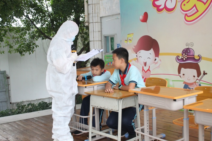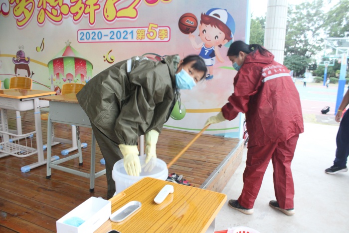 下午,參加演練的老師、學生、衛(wèi)生副校長謝遼霖、校醫(yī)周家喜及所有后勤人員全部到場,根據(jù)事先分配好的角色,認真排練,對過程中的問題,衛(wèi)生副校長和校醫(yī)一一指導,直至完全符合疫情防控要求。
