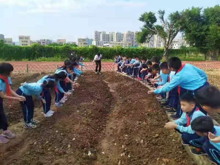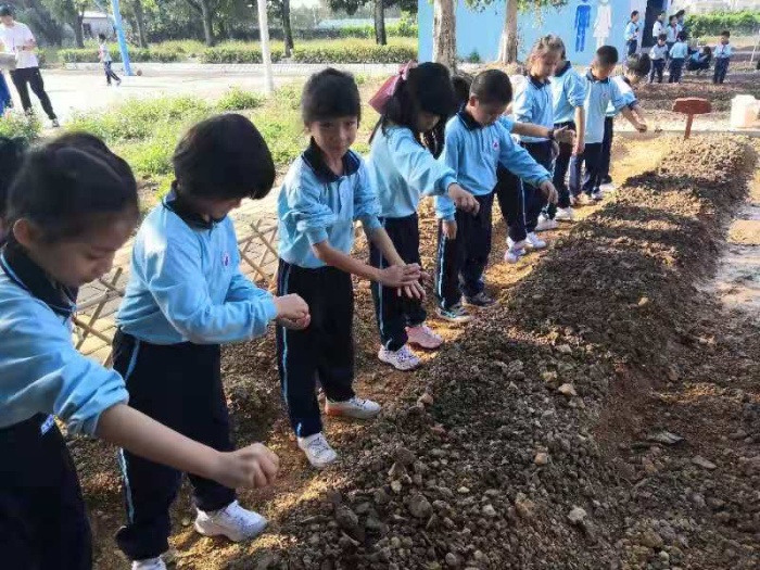 11月6日,稼穡園完成了基本的翻土,達(dá)到播種的條件。潘虹校長、白雪梅總務(wù)主任召集全部班主任到勞動(dòng)基地進(jìn)行班級責(zé)任田分工并且明確任務(wù)與要求。潘校長要求各班要加強(qiáng)紀(jì)律教育,引導(dǎo)學(xué)生愛護(hù)好勞動(dòng)基地,積極參與勞動(dòng)基地的建設(shè)。當(dāng)天大課間,班主任組織全班同學(xué)認(rèn)識了自己班級的勞動(dòng)基地,孩子們興高采烈地播下了格?;ǚN子并且澆水,這使學(xué)生一方面掌握有關(guān)勞動(dòng)的技能,另一方面體驗(yàn)了勞動(dòng)的快樂。
