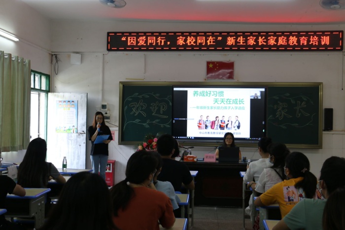 此次家長會主要分兩個議程:首先,由中山市教育教學(xué)研究室心理健康研究員梁劍玲老師為家長們開展專題講座,講座的主題是 “養(yǎng)成好習(xí)慣,天天在成長”。梁老師用簡單易學(xué)的“聰明操”開啟了本次專題講座,許多家長在參與老師的互動游戲中體會到——孩子們進(jìn)入新的學(xué)校會有的緊張和焦慮,作為家長,要學(xué)會接納和理解孩子,跟孩子們一起對新環(huán)境建立熟悉感和認(rèn)同感,協(xié)助孩子,提高他們自主管理能力,才是引領(lǐng)孩子開啟小學(xué)校門的金鑰匙。梁老師用樸實有趣的語言和一個個貼近生活的具體例子,詳細(xì)地介紹了一年級的小朋友應(yīng)當(dāng)怎樣去養(yǎng)成良好的習(xí)慣,如何更快地適應(yīng)小學(xué)生活。