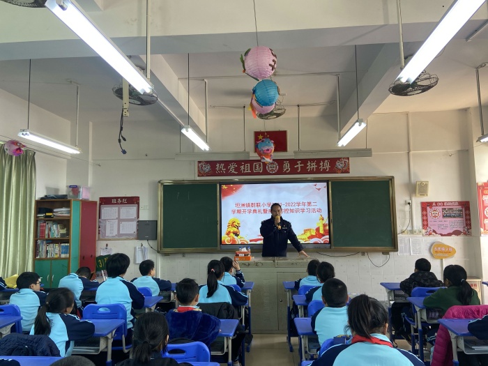 新學(xué)期,新希望,新動力。2月14日,群聯(lián)小學(xué)舉行2021-2022學(xué)年第二學(xué)期開學(xué)典禮暨疫情防控知識學(xué)習(xí)活動。群聯(lián)小學(xué)法制副校長溫文輝警官蒞臨參加了本次活動。