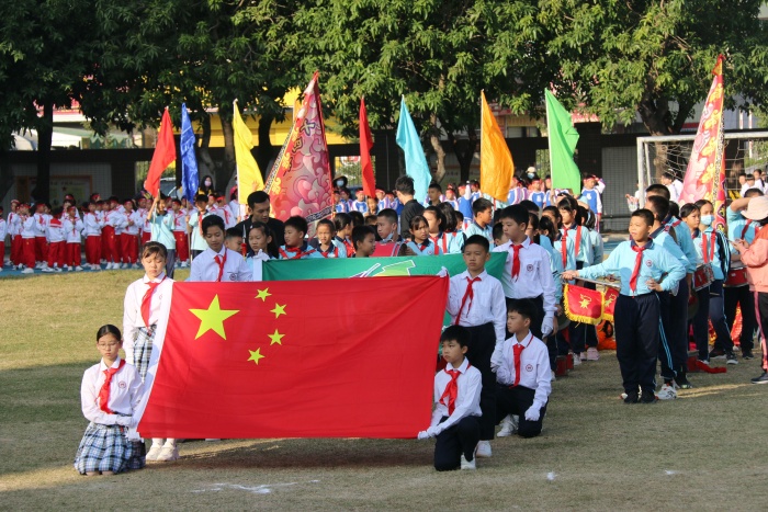 朗朗秋陽,習(xí)習(xí)金風(fēng)。11月18日,坦洲鎮(zhèn)十四村小學(xué)“童心向黨,樂享運(yùn)動(dòng)”為主題的第八屆體育節(jié)暨第23屆田徑運(yùn)動(dòng)會(huì)如約而至。全校師生和家長志愿者近七百人參加校運(yùn)會(huì),14個(gè)班級(jí)全部參加入場式展示和各項(xiàng)比賽角逐。孩子們?cè)谶\(yùn)動(dòng)會(huì)的舞臺(tái)上盡享校園運(yùn)動(dòng)之樂,用矯健的身姿、健康的體魄、頑強(qiáng)的意志,向黨報(bào)告:請(qǐng)黨放心,強(qiáng)國有我!