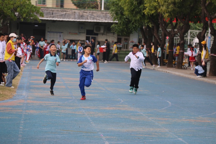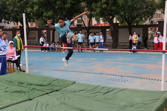 比賽高潮出現(xiàn)在下午的男子和女子4×100米接力賽上,隨著發(fā)令員的一聲槍響,運(yùn)動(dòng)員們英姿勃發(fā),鼓足干勁往前跑。瞧,“小蘇炳添”們緊握著拳頭,憋紅的小臉。運(yùn)動(dòng)員們有一個(gè)共同的目標(biāo):為班級(jí)爭光。賽場下,啦啦隊(duì)們?yōu)殛?duì)員吶喊助威,歡呼聲,喝彩聲,鼓掌聲不絕于耳。接著,進(jìn)行的是體育節(jié)小項(xiàng)目考核:立定跳遠(yuǎn)和25米往返跑。學(xué)生們自信倍增,意氣風(fēng)發(fā),奮力奔跑。