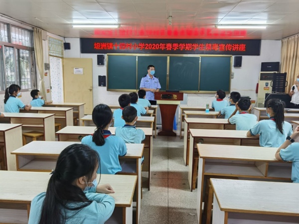 為進(jìn)一步提高和鞏固學(xué)生們的安全意識、法制意識,5月18日,是新學(xué)期返校復(fù)課的第一天,坦洲鎮(zhèn)十四村小學(xué)以電教室為主會場,各班教室為分會場,召開了2020年春季學(xué)生法制安全教育講座。本次講座由學(xué)校法制副校長郭有勝警官主講。