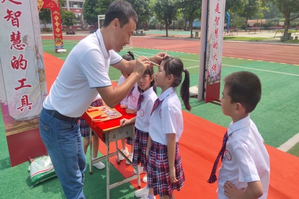 啟以開思,智以廣學(xué)。來(lái)到“啟智門”,校長(zhǎng)和老師們?yōu)樾律鷤儭爸焐包c(diǎn)痣”,開啟智慧。希望同學(xué)們?cè)谌蘸蟮膶W(xué)習(xí)中能目明心亮、一點(diǎn)就通。之后,在父母的陪伴下,新生們走過(guò)“知禮門”“守紀(jì)門”,意味著新生們要成為懂禮貌、守校紀(jì)的好學(xué)生。