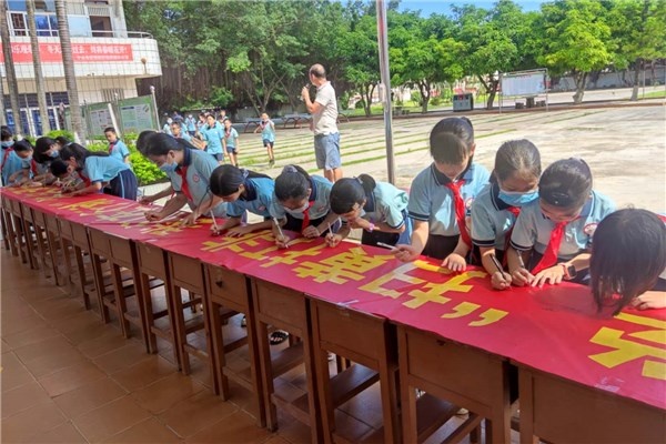護(hù)苗綠書簽簽名承諾活動(dòng)把整個(gè)系列活動(dòng)推向了高潮。在德育主任李潔瓊慷慨激昂的動(dòng)員下,學(xué)生們進(jìn)一步提高安全意識(shí),體會(huì)到珍愛生命珍愛自己的意義。隨后,學(xué)生以班級(jí)為單位,依次在寫有“掃黃打非,我們?cè)谛袆?dòng)”的橫幅上,鄭重簽下自己的名字,以表決心。