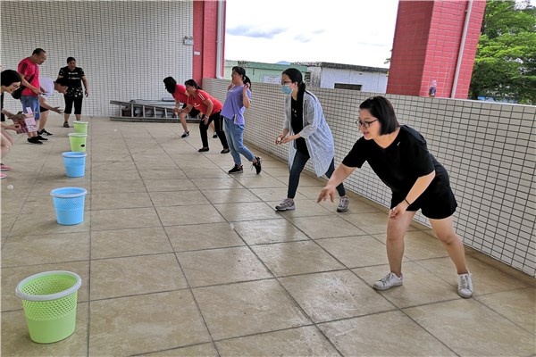 活動前,工會根據(jù)教職員工的喜好,精心安排了“集體墊球”、“百發(fā)百中”等活動?;顒釉诠飨懫漭x老師的組織帶領(lǐng)下有序地開展,員工們?nèi)巳朔e極參與,場面熱烈有趣,整個場地上充滿了掌聲與歡笑。如果說“百發(fā)百中”項(xiàng)目講究的是技巧,那“集體墊球”要求的就是集體意識了。在“集體墊球”中,大家全神貫注地注視著球,想盡辦法維持著板平衡的同時,腳步快速平穩(wěn)移動,以保證球不落地,整個過程即緊張又刺激。哨聲響起,全場歡呼,項(xiàng)目在一片相互擊掌聲中落下了帷幕。員工們紛紛表示這種集體活動今后還要多多舉行,同時也會以更充足的干勁投入到學(xué)校工作中。