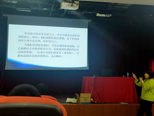 此次講座活動(dòng),理論聯(lián)系實(shí)際,穿插投射游戲活動(dòng),內(nèi)容豐富多彩,既有趣味性又有針對性,同學(xué)們聽得很認(rèn)真,整個(gè)講座氣氛活躍,深受學(xué)生歡迎。使學(xué)生們對青春期的性知識與防止性侵害有了進(jìn)一步的了解,讓他們受益匪淺,這對學(xué)生們今后的生活起到了積極有效的指導(dǎo)作用,使他們順利地健康成長,為學(xué)校營造了良好的心理健康氛圍。