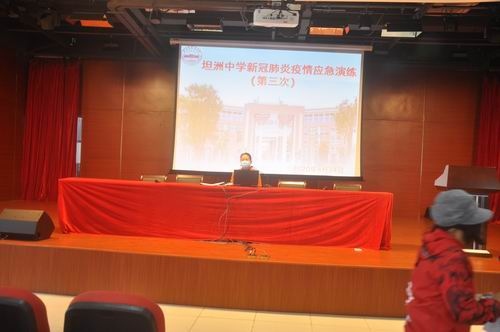 會議由黃金麗副校長主持,分為四個環(huán)節(jié),內容具體,演練逼真,教職員工收獲匪淺。第一個環(huán)節(jié),由該校衛(wèi)生健康副校長張奇珊醫(yī)生給大家上了一堂精彩的疫情知識培訓講座。張醫(yī)生豐富的專業(yè)知識讓教職工豁然開朗,提高了教職工遇到疑似病例時臨危不亂的信心。第二個環(huán)節(jié),由郭日康副校長就2020年春季學期第一批初三返校學生的教育教學工作進行了詳細的解讀。為了讓學生在課堂能夠保持1米以上的安全距離,把原本15個班級拆分為22個班級。為了解決教師不足,從初一初二調配了一批教學經(jīng)驗豐富的教師支援初三教學工作。郭副校長還對學生的錯峰上學放學、課程安排和錯峰就餐等工作提出了明確細致的說明和要求。第三個環(huán)節(jié),坦洲中學吳劍文校長進行開學前的總動員。吳劍文校長分析了當前疫情防控形勢,要求全體教職員工要將思想和行動高度統(tǒng)一到習近平總書記重要講話精神上來,提高政治站位,全力支持學校疫情防控工作,切身履行教育教學的崗位職責,讓第一批返校學子能夠在穩(wěn)定安全的校園生活和學習。吳校長激情昂揚、激動人心的講話不時獲得場下教職員工陣陣掌聲。第四個環(huán)節(jié),為了鞏固教職員工應急實操的掌握,學校進行第三次新冠肺炎疫情應急演練。第一批返崗教職員工分別在學生入校、教室上課、飯?zhí)镁筒?、校醫(yī)室處置、學生放學和宿舍管理等六個場景進行應急演練,涵蓋了學生在校一天學習和生活的主要內容。演練進程快速流暢, 反映出該校返崗的教職工對疫情防控程序流程非常清晰。此次演練還對前兩次演練不足之處做修改和完善,讓演練更貼近實戰(zhàn)效果。