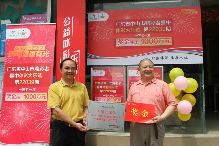 22039期大樂(lè)透全國(guó)銷量為2.56億元,為國(guó)家籌集彩票公益金9224萬(wàn)元。而一等獎(jiǎng)花落坦洲鎮(zhèn)裕洲南村中心街的4418018163體彩實(shí)體店。2022年5月7日,中山市體育彩票管理中心工作人員為中出千萬(wàn)元大獎(jiǎng)的體彩實(shí)體店舉行慶功儀式。