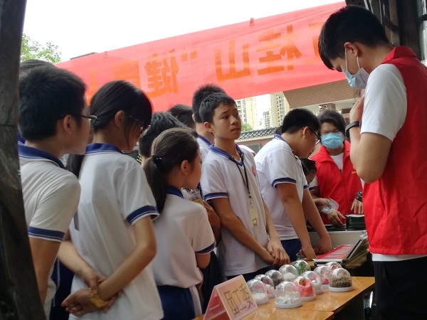 本次禁毒宣傳活動主要以游園活動為主。各位社工在校園內設置了禁毒知識宣傳展位,同學們利用課間時間紛紛來到各展位參加游園活動。在仿真毒品展示處,學生根據(jù)各位社工和志愿者的指引,認真細致地觀察仿真毒品的形態(tài)、色澤。從一件件展品中,學生們了解到了“K粉”“海洛因”“大麻”等常見毒品的模型,初次見到“開心水”“郵票”“彩虹煙”等新型毒品模型。參觀學生也真切地感受到毒品離我們的生活并不遙遠。