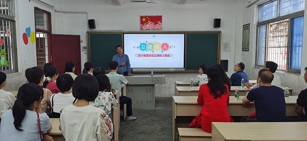 兩天的活動(dòng),在大溝小學(xué)陳春和校長主持的簡單而熱烈的歡迎儀式中展開。在雙方學(xué)校人員互相認(rèn)識(shí)后,五桂山學(xué)校藍(lán)青林副書記首先為大溝小學(xué)全體教師上了一節(jié)主題為“立德樹人,德育為本”的學(xué)校管理專題講座。藍(lán)副書記從“班子服務(wù),決策引領(lǐng)”、“師德鑄魂,凝心聚力”“培訓(xùn)提升,專業(yè)成長”“制度引領(lǐng),有章可循”四個(gè)維度分享了五桂山學(xué)校在教師隊(duì)伍建設(shè)和學(xué)校制度管理方面的有效經(jīng)驗(yàn)。