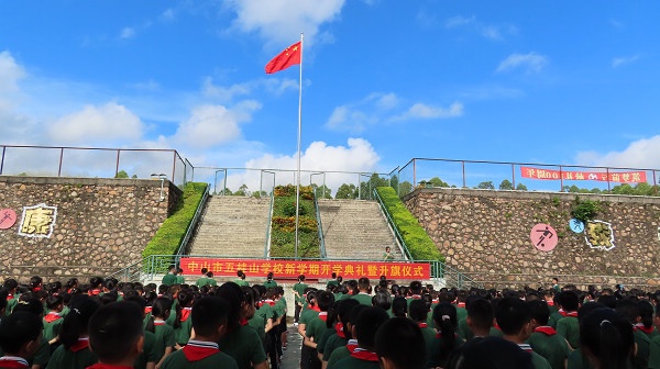 在中學(xué)部學(xué)生會主席施嘉瑩同學(xué)作題為《新學(xué)期 新征程》的國旗下講話后,五桂山學(xué)校黨支部書記陳玉玲在新學(xué)年的講話中寄語全體學(xué)生:做新時代有“志氣、骨氣、底氣”的學(xué)生。志氣是對國家和民族的忠誠,國家民族至上,中小學(xué)生要從愛家、愛班集體、愛學(xué)校、愛家鄉(xiāng)做起,長大了愛祖國愛民族,并為之奮斗,為之貢獻(xiàn)。骨氣就是自信,一個沒有自信的人談不上骨氣,更談不上國之棟梁。骨氣就是貢獻(xiàn),同學(xué)們要立志為民族復(fù)興的百年奮斗目標(biāo)貢獻(xiàn)自己的力量,哪怕在一個小小的崗位上,在一個不起眼的小地方奉獻(xiàn)光輝的一生。對于中小學(xué)生而言,中華五千年的文明讓我們自信滿滿,在求學(xué)階段,同學(xué)們要對集體有奉獻(xiàn)精神,樂于助人,陽光地積極地面對生活和學(xué)習(xí)中遇到的困難。底氣就是能力,沒有真才實(shí)學(xué)談不上底氣。陳校長勉勵同學(xué)們從小要定目標(biāo),傳承并發(fā)揚(yáng)“祖國利益高于一切”的紅色精神,勤學(xué)苦練,練就本領(lǐng),將來為祖國貢獻(xiàn)。陳校長的講話讓同學(xué)們受益匪淺,引來陣陣掌聲。