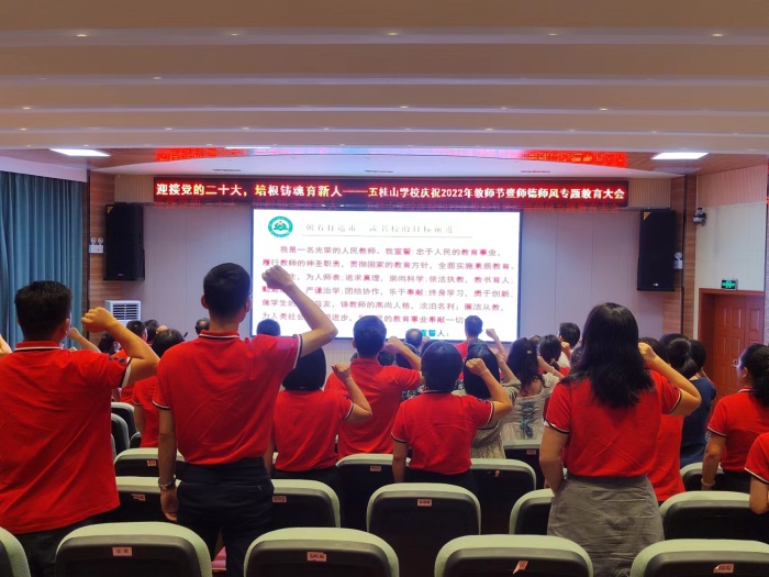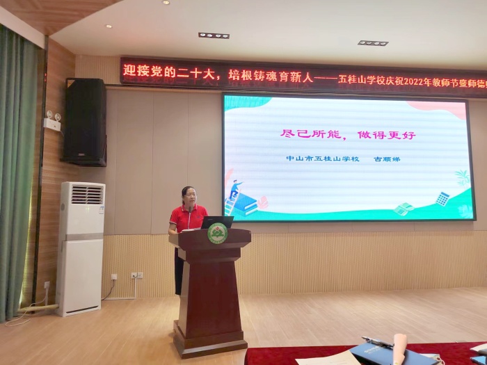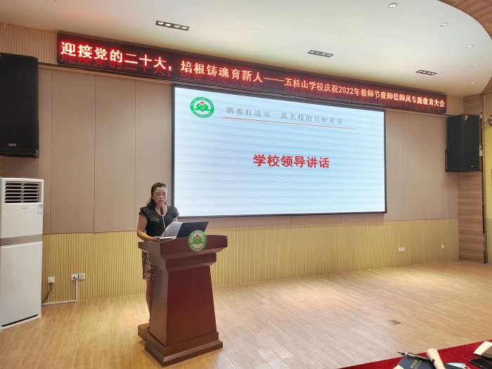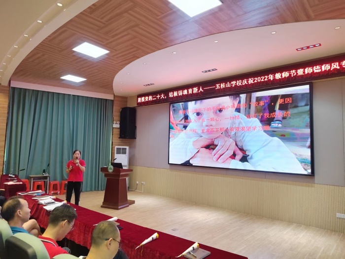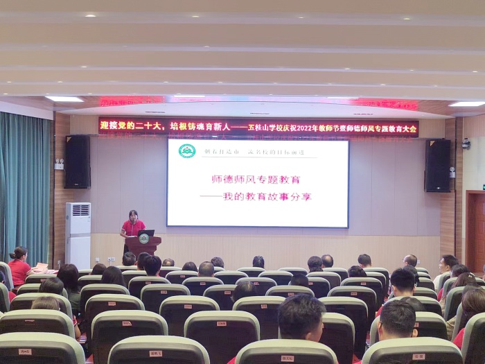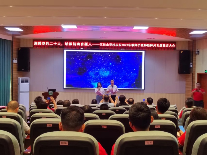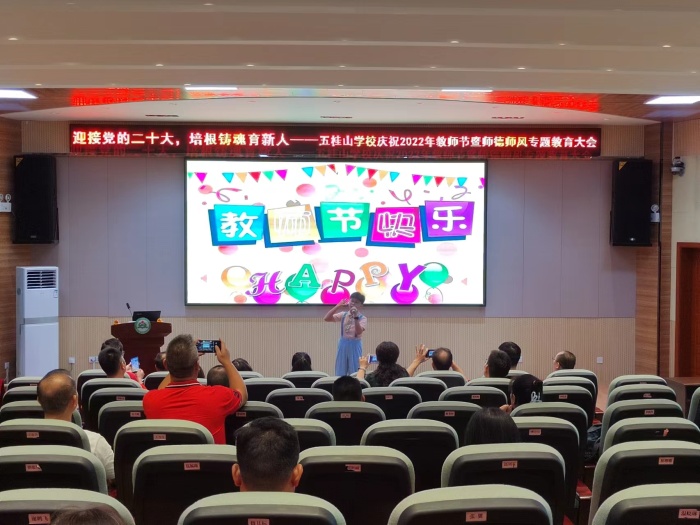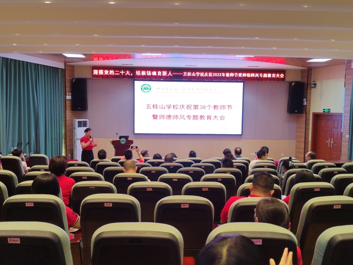 在漾著秋韻的日子里,我們欣喜地迎來了屬于我們自己的節(jié)日!今年9月10日是我國第38個教師節(jié),今年教師節(jié)的主題是:迎接黨的二十大,培根鑄魂育新人。9月9日下午,五桂山學校全體教師歡聚綜合報告廳,舉行教師節(jié)慶?;顒郁邘煹聨燂L專題教育大會。