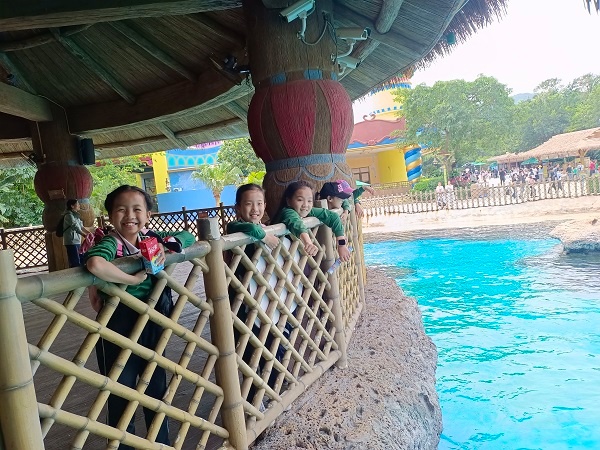 大約一個(gè)小時(shí)的車程,學(xué)生們終于到達(dá)向往已久的海洋王國(guó)。懷著迫切的心情,同學(xué)們整齊有序排隊(duì)入園。走進(jìn)園區(qū),同學(xué)們與動(dòng)物明星們親密接觸,耐心傾聽工作人員介紹,認(rèn)真觀察了解動(dòng)物朋友的秘密。瞧!在動(dòng)人的音樂伴奏和訓(xùn)練員的指導(dǎo)下,可愛的白鯨在水中做出跳躍和360度旋轉(zhuǎn)等高難度動(dòng)作,體態(tài)優(yōu)美如水中芭蕾,場(chǎng)館內(nèi)不時(shí)傳來熱烈的掌聲和陣陣歡呼聲。在企鵝館內(nèi),同學(xué)們發(fā)現(xiàn)企鵝們?cè)谘┑厣蟿?dòng)作緩慢笨拙,可是當(dāng)它們一躍入水中,動(dòng)作就會(huì)快如閃電,在水中劃出一道道潛行軌跡!同學(xué)們穿梭在各個(gè)海洋動(dòng)物的館舍,收獲滿滿。在各類游戲項(xiàng)目中,同學(xué)們體驗(yàn)了極致的歡樂與刺激,他們?cè)趨群奥曋袕?qiáng)身健體,在尖叫聲中錘煉意志。