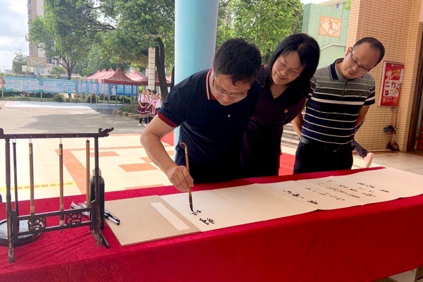 據(jù)悉,小欖豐華學(xué)校的毛筆書法教育開展得比較早。早在2009年該校以校園書法社團(tuán)活動(dòng)的形式推進(jìn)校園書法教育。后來(lái),該校又采取聘請(qǐng)專業(yè)老師、外聘專家、培養(yǎng)一專多能的教師等舉措,落實(shí)“全員書法”,行政、老師、學(xué)生齊上陣,帶動(dòng)了許多家長(zhǎng)也參與到學(xué)書法中來(lái)。小欖豐華學(xué)校的書法教育的步伐越走越堅(jiān)定,路子越走越寬,成果不斷涌現(xiàn)。師生在市鎮(zhèn)級(jí)以上的各級(jí)書法專業(yè)大賽中每年都有超過(guò)300人次的獲獎(jiǎng)。先后在北京太廟、廣東省立圖書館、中山市美術(shù)館、小欖鎮(zhèn)藝術(shù)館等場(chǎng)所,舉辦了“翰墨豐華”系列師生書法展多場(chǎng),書法教育碩果累累。今天,翰墨豐華·中山市小欖豐華學(xué)校2020屆畢業(yè)生代表書法作品展的成功舉辦,是該校書法藝術(shù)教育進(jìn)程中的一個(gè)美麗的注腳,是該校書法教育的又一個(gè)可喜的成果。