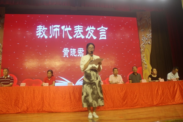 教師代表黃曉君老師從青年教師的角度,在發(fā)言中表達(dá)了對(duì)老師們節(jié)日的問候和祝福,抒發(fā)了對(duì)教師職業(yè)的感受,表示要以名師為奮斗目標(biāo),滿腔熱忱地投入到工作中,把愛心奉獻(xiàn)給學(xué)生,為學(xué)生的成長和發(fā)展服務(wù),最終實(shí)現(xiàn)自己人生價(jià)值的決心。