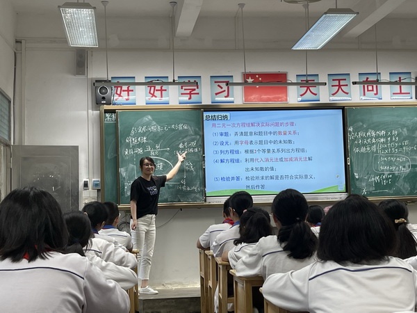 2023年4月21日上午,楓洋中學陳貴蕓老師、小欖一中廖月紅老師分別以七年級數學《實際問題與二元一次方程組(第一課時)》為內容,開展同課異構交流活動。兩位老師的課堂各有風格。廖月紅老師在課堂上親切生動的講解,很快吸引了楓洋中學702班的同學。大家心情放松,課堂氣氛活躍,緊跟老師思路,課堂效果明顯。