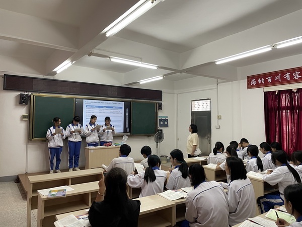 同時,小欖一中馮淑筠老師在楓洋中學會議室,為八年級1班的學生上了一節(jié)非?;钴S的英語課。開始時,學生有點不適應教師們聽課和全英文教學,反應較沉悶。馮老師憑借生動的肢體語言、輕快的英語聲調,充分調動了學生們的積極性,并不斷進行鼓勵。表現(xiàn)突出的同學或小組,還能得到馮老師帶來的小獎品。學生們受到鼓舞,學習自信心增強,小組口語對話越練越好。