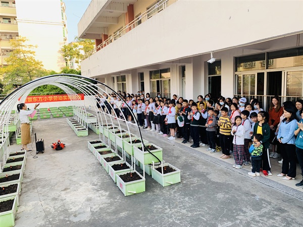 11月23日下午,翠景東方小學(xué)舉辦了“開心農(nóng)場”勞動實踐基地開播儀式。雷萬兵校長、韓少蘭副校長、各年級主任、各班班主任、家長代表和萬谷空中農(nóng)場技術(shù)人員等參加了本次活動。