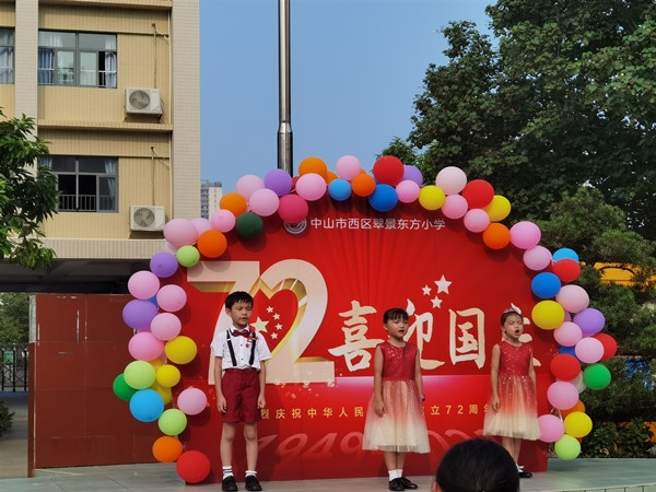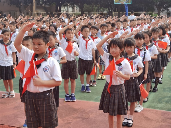 全校少先隊(duì)員齊唱《我和我的祖國(guó)》,并熱情地?fù)]舞手中鮮紅的五星紅旗,表達(dá)自己對(duì)祖國(guó)母親的熱愛,傳遞出莘莘學(xué)子的愛國(guó)主義精神。在少先隊(duì)員們激情澎湃的歌聲中,一面面鮮紅的國(guó)旗隨風(fēng)飄動(dòng),仿佛在向革命先輩們致敬……