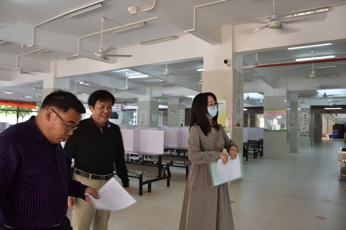 校園疫情防控專項(xiàng)督導(dǎo)。隨后,督查組姚佳老師關(guān)切詢問了中山一中鐵城中學(xué)師生員工返校人數(shù)、師生健康狀況、核酸檢測、健康監(jiān)測管理、食堂就餐、疫情防控以及應(yīng)急措施等具體情況。??倓?wù)處韋奮勇主任詳細(xì)匯報(bào)了清明節(jié)返校及學(xué)校疫情防控工作,為做好清明節(jié)后的疫情防控工作,鐵城中學(xué)嚴(yán)格落實(shí)了“兩個(gè)全面”,以保證校園安全。韋主任匯報(bào)中提及,一、全面排查全體師生及其同住家人的健康和出行情況。4月5日清明節(jié)當(dāng)天下午,鐵城中學(xué)全面排查了全體師生及其同住家人的“粵康碼”和“行程卡”,確保師生節(jié)后健康安全返校;二、全面消毒。4月5日,校后勤職工對(duì)學(xué)校進(jìn)行全面消殺消毒。持續(xù)通風(fēng),確保每一間教室的安全性。此外,鐵城中學(xué)韋主任也介紹了鐵城中學(xué)每天的師生晨午晚檢制度、疫情防控以及應(yīng)急措施等工作落實(shí)情況。