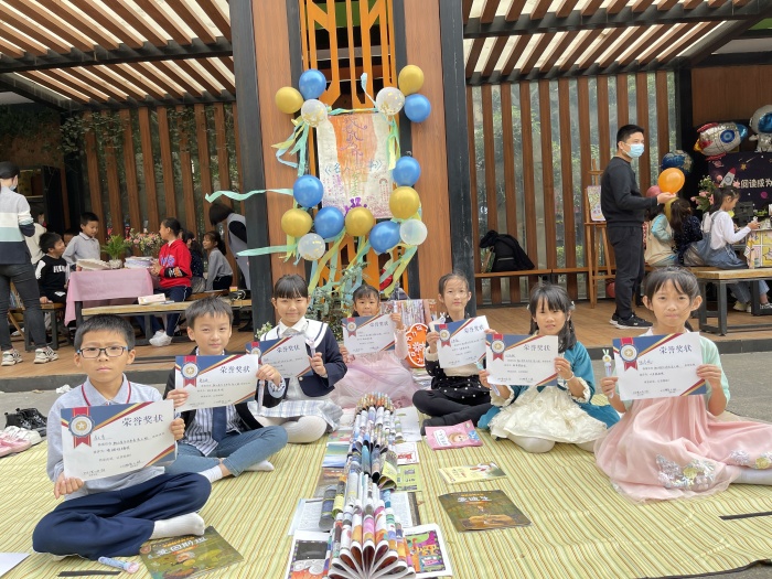 從閱讀護(hù)照的動態(tài)作業(yè)到閱讀活動的實(shí)境體驗(yàn),本次校園書會由校長贈書、校園一角書會、班級書會三個部分組成。在校園一角和室內(nèi)等多個場地同步開展各班獨(dú)具特色的書會。戶外場包括詩書廊、星空廊、雅趣閣、閱讀館、風(fēng)雨廊,分別由二年級4班、三年級1班、四年級8班、五年級3班以及六年級8班等負(fù)責(zé)。室內(nèi)場在各班教室進(jìn)行。活動現(xiàn)場,學(xué)生以小組為單位,布置閱讀場地,制作宣傳海報,撰寫廣告詞,準(zhǔn)備推薦書籍,從下午2:30到4:00各項(xiàng)閱讀體驗(yàn)活動紛紛開展,校園沉浸在閱讀與分享、朗讀與微表演、討論與思考中,書香亦是成長之馨香,鐵小時光里動人的一刻永遠(yuǎn)留在每一個孩子心中。