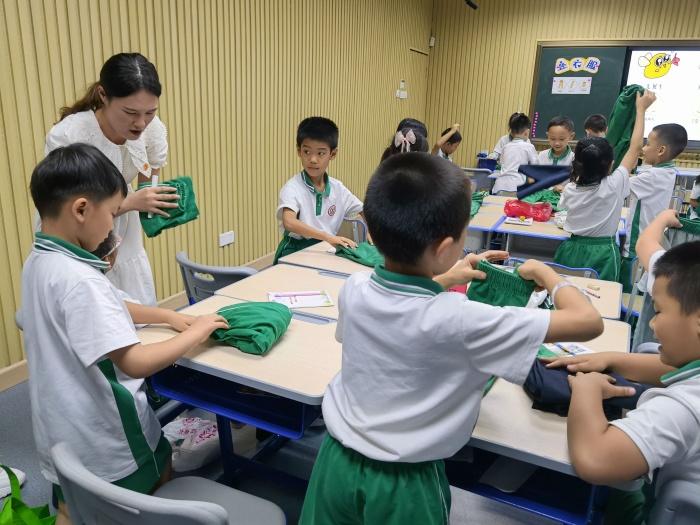 第二節(jié)課例是由香山小學(xué)司雯老師進(jìn)行一年級課例《疊衣服》課堂展示。司老師先是用手指操和猜謎語導(dǎo)入主題,以直觀的圖片對比方式讓學(xué)生感知疊衣服的作用。課堂由易到難,環(huán)環(huán)相扣,先是疊褲子再到疊上衣,把課堂交給學(xué)生,學(xué)生不僅了解褲子和上衣的結(jié)構(gòu)而且了解多種疊法。讓學(xué)生先嘗試再提出問題再嘗試,讓學(xué)生自己動手,開發(fā)學(xué)生的思維力,課堂氣氛十分活躍。最后進(jìn)行小組疊衣服比賽和個人疊衣服比賽。