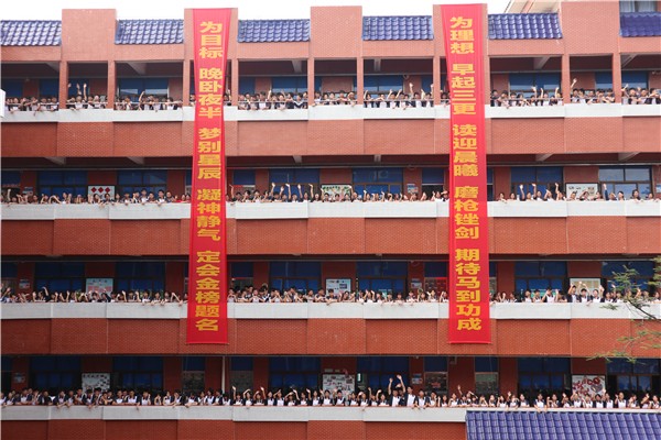 喊樓的活動,既滿載著低年級對高三年級的暖心祝福,也是高三學子的自我鼓勵,幫助他們更好地釋放壓力,懷抱希望。