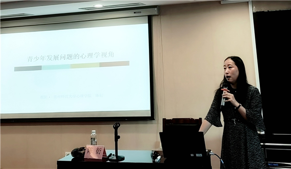 陳教授通過“初一女生的軀體化心理問題、高一的焦慮女孩、強迫癥大學(xué)生”等豐富的案例,讓老師們認(rèn)識到壓力對青少年學(xué)生產(chǎn)生的巨大影響。同時,她還進一步闡述了青少年心理發(fā)展的特征和當(dāng)前青少年的成長環(huán)境。陳教授通過活動和案例充分激發(fā)了老師們的學(xué)習(xí)興趣,也讓大家正確認(rèn)識了青少年學(xué)生的心理狀況。