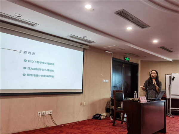 陳教授以壓力為主題,通過壓力下的學(xué)生心理變化、壓力后的學(xué)生心理發(fā)展以及師生溝通中的影響策略三個方面進行闡述,從認(rèn)識、情緒和行為上提升老師們的心理學(xué)智慧。