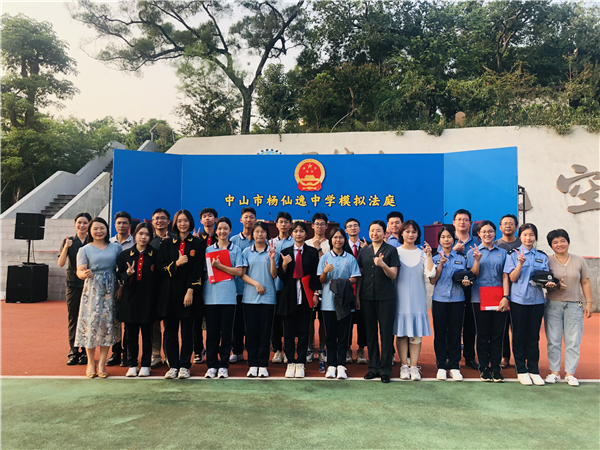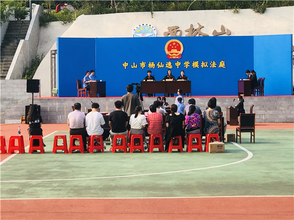 9月13日,一場“法治護航、學法知法”模擬法庭進校園普法活動在楊仙逸中學山頂運動場開展,此次活動由廣東省中山市中級人民法院和楊仙逸中學聯(lián)合主辦。出席活動的嘉賓有中山市第一人民法院一級法官陳綺霞、書記員吳娟歡、苑鵬、何潔瑩、中山市楊仙逸中學黨委書記、校長劉朝暉、德育副校長劉莉祥以及德育線、高一年級管理團隊和2022級全體新生。