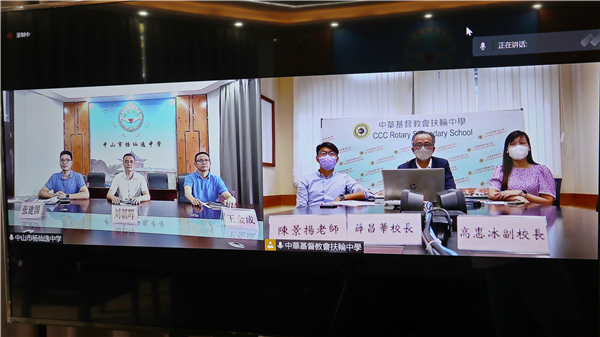9月21日下午,楊仙逸中學(xué)與香港中華基督教會(huì)扶輪中學(xué)舉行了首次云端視頻會(huì),雙方在線上交流中形成共識(shí),增進(jìn)互信,初步達(dá)成互訪計(jì)劃。我校劉朝暉校長(zhǎng)、王金成副校長(zhǎng)、張建國(guó)主任與扶輪中學(xué)的薛昌華校長(zhǎng)、高惠冰副校長(zhǎng)、陳景揚(yáng)主任作為學(xué)校代表進(jìn)行見(jiàn)面互談。