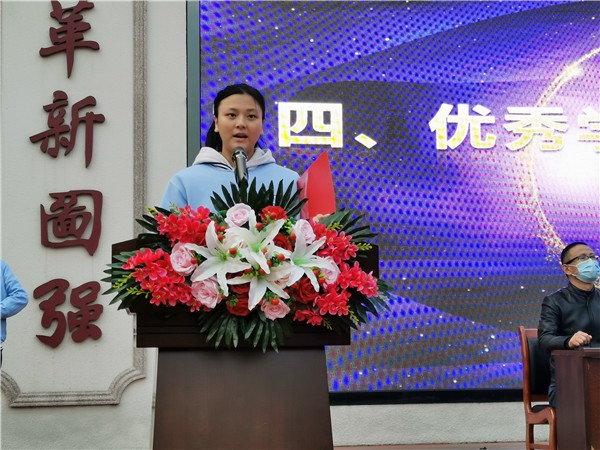 優(yōu)秀學(xué)子代表張霜霜發(fā)表獲獎感言,感謝了江國良先生對優(yōu)秀學(xué)子的褒獎。大家將帶著感恩之情,懷著對未來的美好期許,腳踏實(shí)地,奔向遠(yuǎn)方,回饋母校、回報(bào)社會。她講到,善、雅、勤、新的校訓(xùn),將軍志在沖天的精神,時時激勵著同學(xué)們,以新仙中人之態(tài)鳴仙中之進(jìn)步,以鏗鏘之勢發(fā)仙中之聲,為仙中發(fā)展添磚加瓦,努力成為仙中未來的榮光。