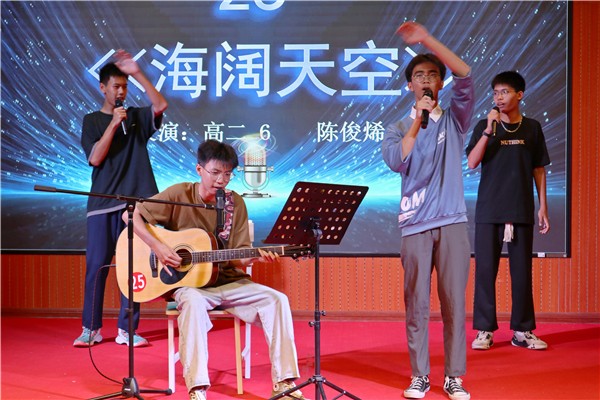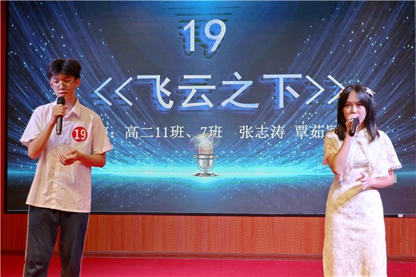 音樂響起,選手輪番上場,深情演唱,表現(xiàn)得從容淡定。曲目類型豐富,風(fēng)格各異,民謠、搖滾、說唱、古風(fēng)樂交替上演。比賽用獨唱、合唱、吉他彈唱多樣式演繹。一首首耳熟能詳?shù)男@歌曲,一陣陣掌聲雷動,一聲聲喝彩助威,表現(xiàn)了仙中學(xué)子積極向上,青春洋溢的姿態(tài)。還有不少頗具臺風(fēng)的選手,熱情地和觀眾進行揮手互動,活躍起現(xiàn)場氣氛。