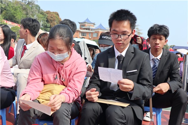 劉朝暉校長現場致辭。他以寒門博士黃國平為榜樣激勵,談到青春無不伴隨著哭、累與挫折,但也滿溢著獨立、奮斗、擔當精神,帶領同學們走近“青春”,認識“青春”,不負“青春”。“青春沒有不苦”、“青春沒有不累”、“青春無不經歷挫折”,然而,更要看到,“青春最成熟的樣子當是獨立”、“青春最靚麗的底色當是奮斗”、“青春最美麗的姿態(tài)當屬擔當”,以青春之我創(chuàng)青春之未來。