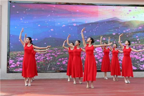隨后,一支《映山紅》踏著優(yōu)美舞步款款而來,緩慢而輕柔,花開不易,終也遍野綻放,正象征同學們的努力終不被辜負。