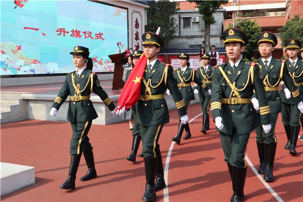 一曲莊嚴恢宏的《國歌》響起,全體起立,高唱國歌。