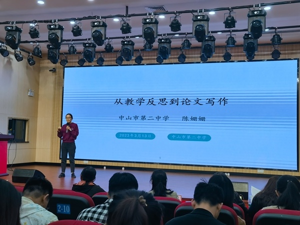2023年3月13日晚,中山市第二中學(xué)報告廳內(nèi)燈光明亮,教研氛圍濃厚。在學(xué)校領(lǐng)導(dǎo)的大力支持下,中山市第二中學(xué)寫作組開展了第六次教學(xué)論文研磨活動。本次活動由學(xué)校教科室歐陽珊副主任主持,中山市青年教師領(lǐng)軍人才中山市第二中學(xué)陳姍姍老師進行專題講座,中山市寫作組專家老師對論文進行點評和指導(dǎo)。學(xué)校寫作組成員、青年教師們滿懷學(xué)習(xí)熱情,積極參加了本次學(xué)習(xí)活動,感到收獲滿滿。
