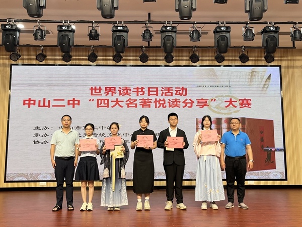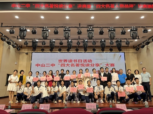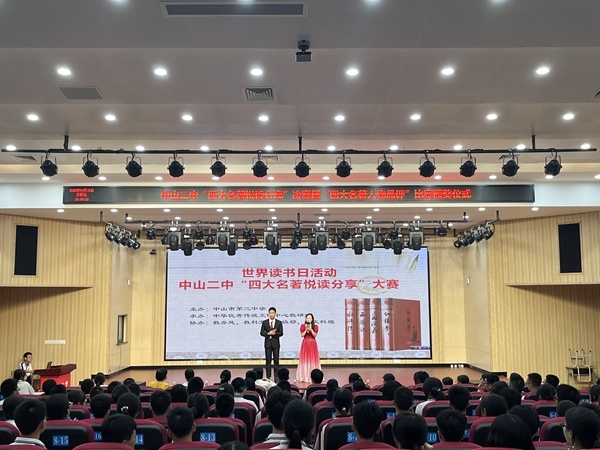 在第28個(gè)世界讀書日來臨之際,為全面貫徹黨的二十大關(guān)于深化全民閱讀活動(dòng)的重要部署,落實(shí)立德樹人根本任務(wù),為引導(dǎo)學(xué)生養(yǎng)成親近中華經(jīng)典的閱讀習(xí)慣,營造校園良好的書香氛圍,響應(yīng)中山市“爭創(chuàng)文明典范城市”的號召,中山二中舉辦“四大名著悅讀分享”“四大名著人物品評”系列活動(dòng)。閱讀中華經(jīng)典小說,傳承優(yōu)秀傳統(tǒng)文化。4月19日下午,“四大名著悅讀分享”決賽精彩上演。