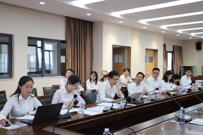 第一項議程,謝志斌校長匯報課題研究進程。目前,課題組制定的各項研究計劃正按計劃分工實施,已基本形成完整的視覺識別系統(tǒng)并進一步應用于學校文化建設中,正著力于組織子課題選題、推進子課題論證、完善子課題研究方案等。