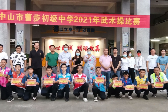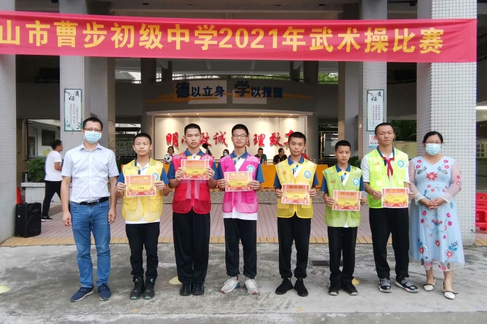 為了更好地促進曹步初級中學學生身體素質的提高,全面推行學校特色項目的發(fā)展,促進體藝2+2項目的建設,檢測初一、初二學生課間操的學習成果,以“習慣養(yǎng)成”為原則,規(guī)范學校管理,加強班風班貌和精神文明建設,加強德育、智育、體育的發(fā)展和合作,全面增強班級凝聚力,促進學風、校風建設,使課間達到規(guī)范化、熟練化、美觀化,2021年10月20日下午,曹步初級中學在中大堂前舉行了初一、初二級課間操行為規(guī)范比賽暨武術操比賽,本次活動由體育老師賀坤主持,初一初二全體同學和部分家長參加了本次活動,學校領導和部分家委擔任本次活動的評委。