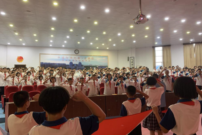 全體少先隊員齊唱少先隊隊歌,重溫入隊誓詞。在鮮紅的隊旗下,同學們舉起右拳,立下響亮的誓言:“準備著為共產(chǎn)主義事業(yè)而奮斗!”“時刻準備著!”。初一全體少先隊員用呼號的方式表達自己努力成長為優(yōu)秀共產(chǎn)主義事業(yè)接班人的決心。