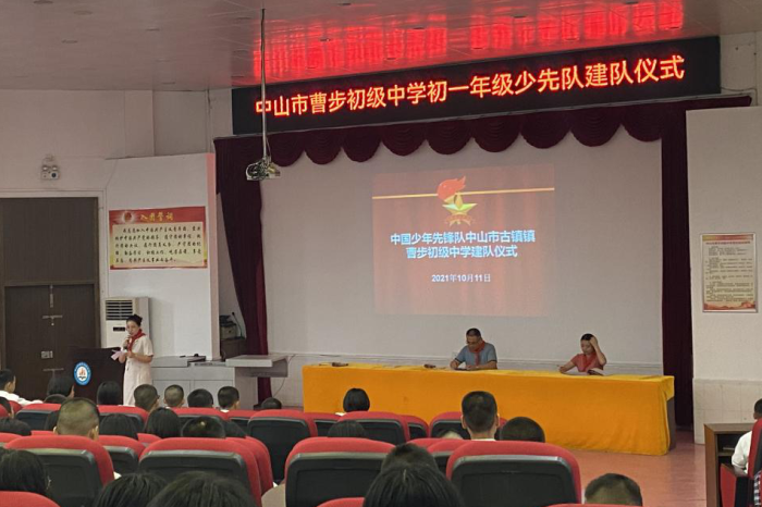 金秋十月,與新中國共同成長的中國少年先鋒隊迎來了72周歲的生日。為激勵少先隊員愛黨愛國的精神,增強少先隊員的組織歸屬感、光榮感,10月11日下午,曹步初級中學初一年級全體同學集中學校報告廳舉行“紅領(lǐng)巾一心向黨”少先隊建隊儀式,學校少工委主任年四揚校長、大隊總輔導員詹廣權(quán)主任、初一年級大隊長馮艷紅老師等出席活動,活動由少先隊副總輔導員蔡蝶老師主持。