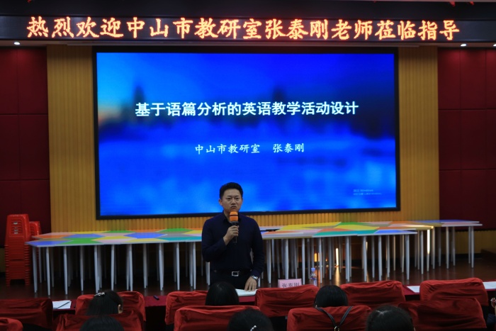 本次教研活動(dòng)的第二個(gè)環(huán)節(jié),張?zhí)﹦偫蠋熞浴痘谡Z(yǔ)篇分析的英語(yǔ)教學(xué)活動(dòng)設(shè)計(jì)》為主題,為東鳳中學(xué)全體英語(yǔ)教師開(kāi)展了一次教學(xué)講座。在本次講座中,張?zhí)﹦偫蠋煆摹盀槭裁捶治稣Z(yǔ)篇”“語(yǔ)篇分析主要分析什么”和“教師為什么要設(shè)計(jì)教學(xué)活動(dòng)”這三個(gè)方向?yàn)槲覀冎v述了鍛煉學(xué)生英語(yǔ)思維能力,要求教師從文本選擇到分析文本再到教學(xué)活動(dòng)設(shè)計(jì)的每個(gè)步驟都需要基于真實(shí)語(yǔ)境。張老師的講座為各位老師以后的教學(xué)活動(dòng)設(shè)計(jì)帶來(lái)了新的指導(dǎo)意見(jiàn)。
