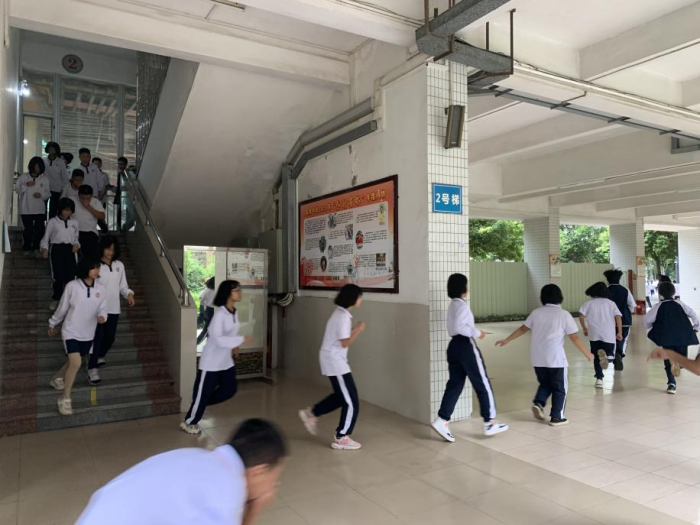 上午8點(diǎn)53分,隨著應(yīng)急警報(bào)鈴聲的響起,演練正式開始。各樓層值日老師第一時(shí)間迅速到崗,協(xié)助學(xué)生隊(duì)伍快速、有序地撤離,各班主任正確指導(dǎo)學(xué)生,各班都能按要求跟著隊(duì)伍迅速撤離到安全的位置。整個(gè)過程師生都能做到有秩序、行動(dòng)快速,配合默契,沒有出現(xiàn)混亂的場面,并且無任何人員傷亡。