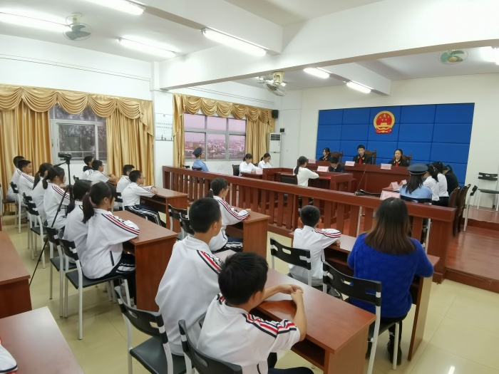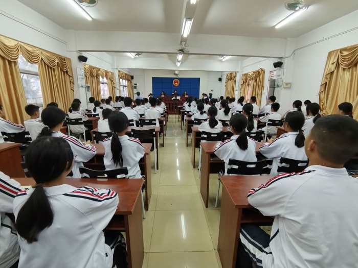 為進(jìn)一步建設(shè)平安校園,努力營(yíng)造學(xué)生學(xué)法、知法、守法的法治氛圍,增強(qiáng)學(xué)生的法治觀念。2021年12月9日,由葉綺敏老師輔導(dǎo)的一場(chǎng)別開生面的模擬庭審活動(dòng)在港口中學(xué)五樓模擬法庭室上演。學(xué)生們擔(dān)任審判長(zhǎng)、陪審員、公訴人、辯護(hù)人、被告人、證人、法定代理人和法警等角色,通過真實(shí)再現(xiàn),模擬審判了一起由早戀行為引起的校園欺凌及校園傷害案件。給師生們上了一堂鮮活的法治教育課。