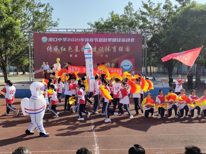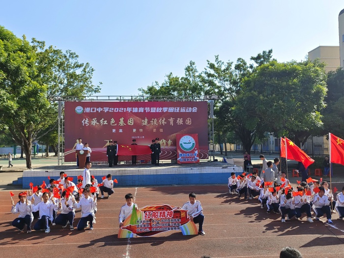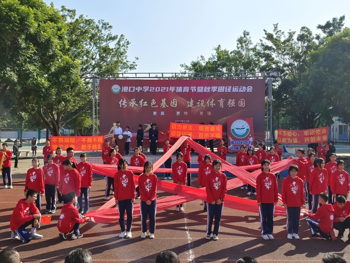 為慶祝中國共產黨成立 100 周年,學光輝黨史,傳紅色精神,用黨的偉大成就激勵學生,用黨的優(yōu)良傳統(tǒng)教育學生, 用黨的成功經驗啟迪學生,為廣大師生提供生動鮮活的中國精神學習氛圍,2021年11月,港口中學2021年體育節(jié)暨秋季運動會圍繞“傳承紅色基因,建設體育強國”為主題開展。